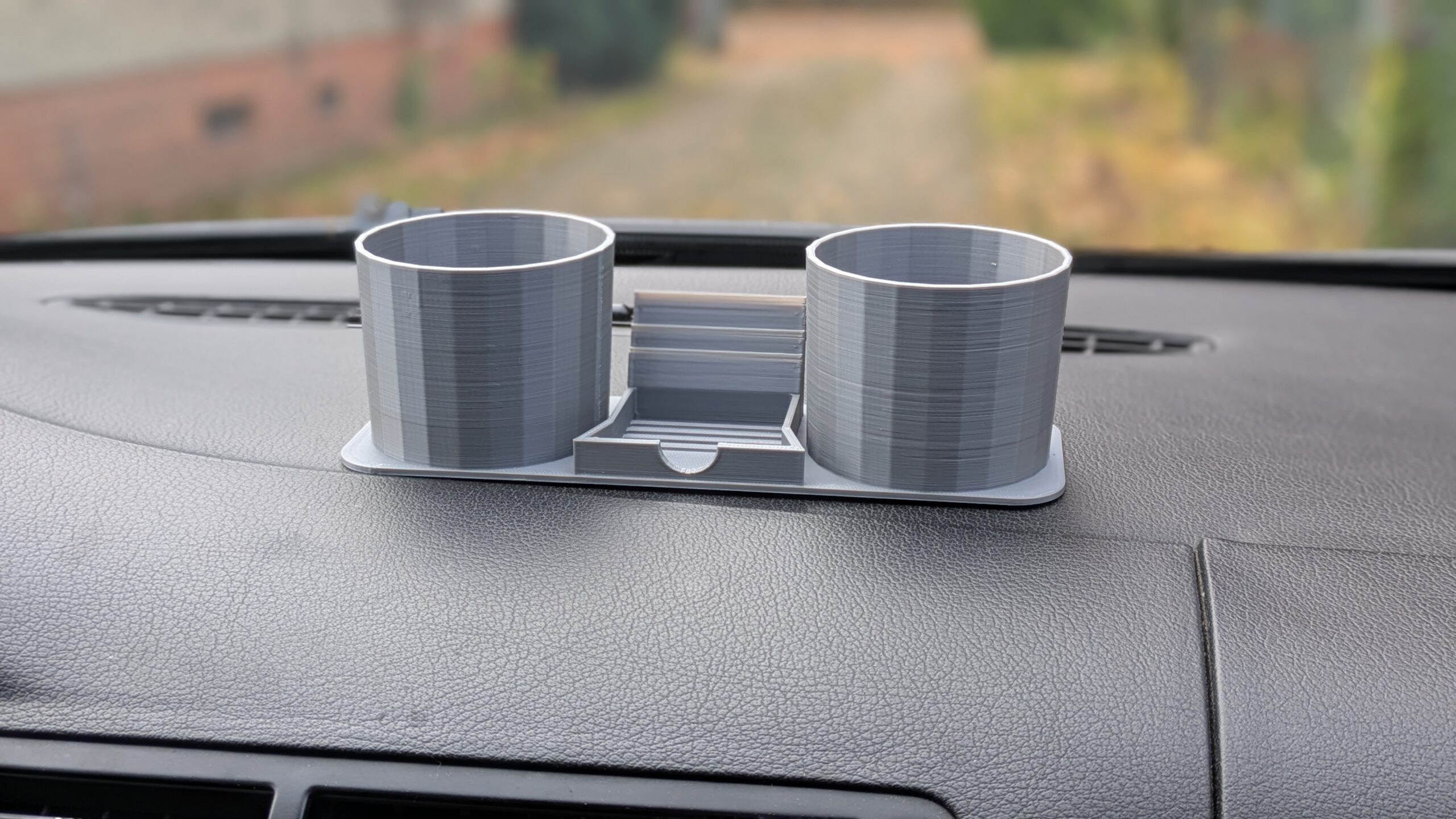 • passgenauer Getränkehalter ideal für 0,5L Dosen und Kaffeebecher